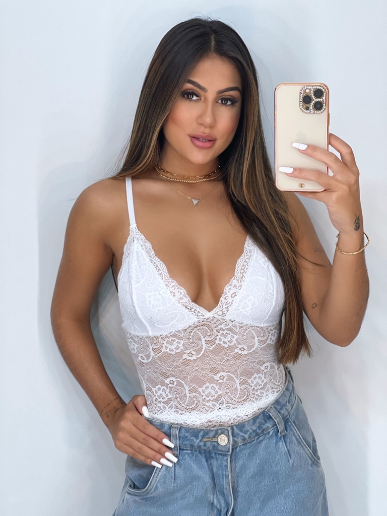 Body sem bojo confeccionado em renda bojo com forro 100% algodão, peça versátil usada com lingerie e lingerie aparente, trazendo conforto e sensualidade.